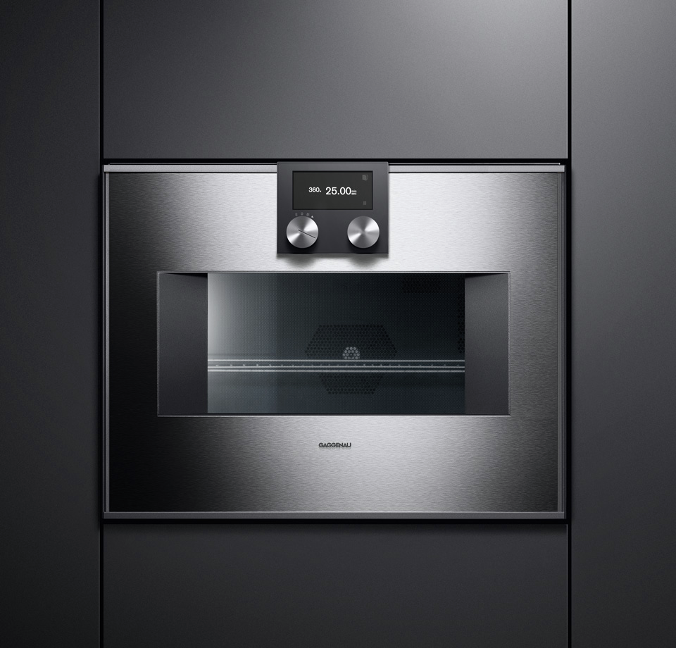 При подборе техники на кухню встал вопрос выбора духового шкафа. А так как сама кухня не большого размера и чтобы не покупать духовку и микроволновку, остановили свой выбор на комбинированном духовом шкафе Gaggenau.